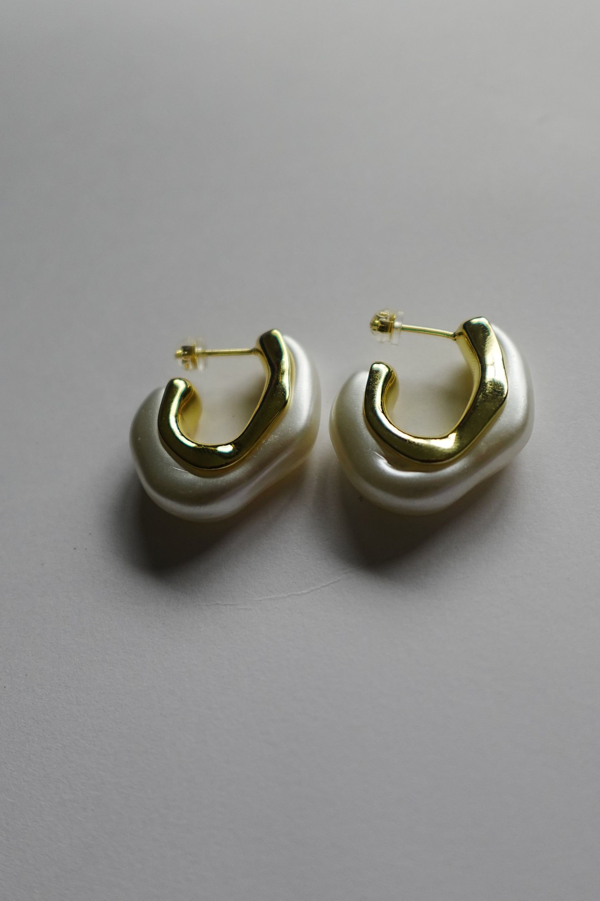 Abstract Pearl Gold Filled Hoop Earrings